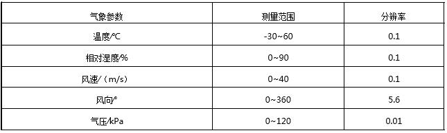 氣象五參數儀可同時測量大氣溫度、相對濕度、風速、風向和氣壓等五種氣象要素,氣象參數應符合下表的要求;
