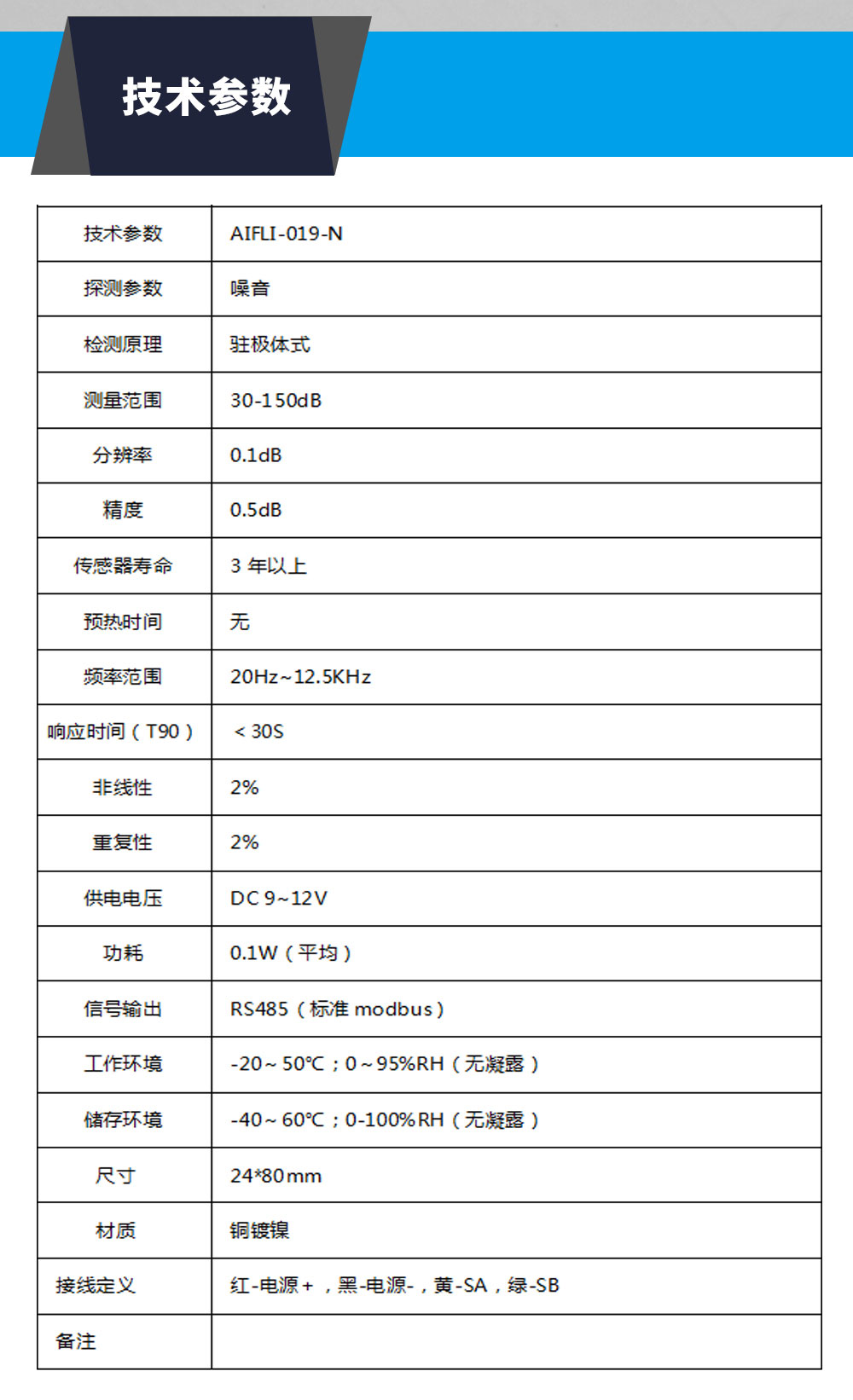AIFLI-019-N噪音檢測傳感器模塊采用進口元器件標定輸出信號TTL和IIC,另外還有RS485信號可選針對集成商低成本應用用戶設計,直讀式噪音檢測模塊,實驗艙統一標定,數據穩定可靠。