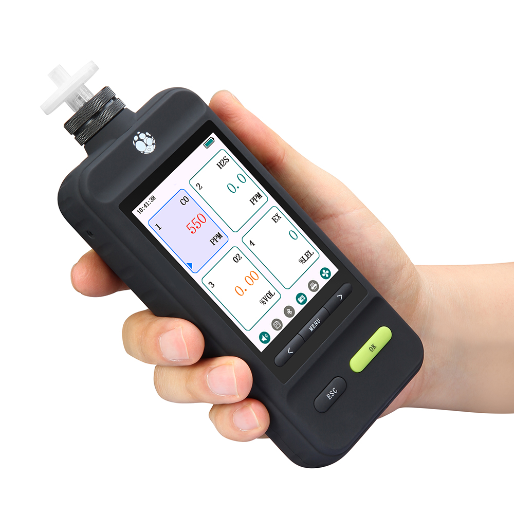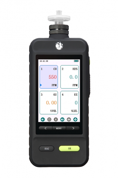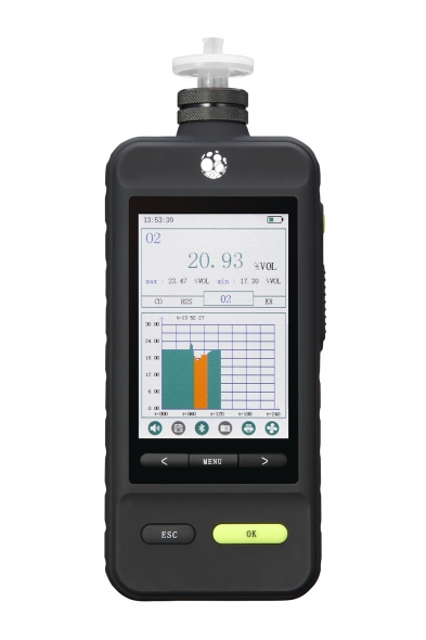 顯示內容: 氣體分子式,濃度數據、計量單位、氣體曲線走向、電池電量、時間、溫度、濕度、壓力(選配)、泵狀態、無線狀態、打印機狀態、截屏狀態等