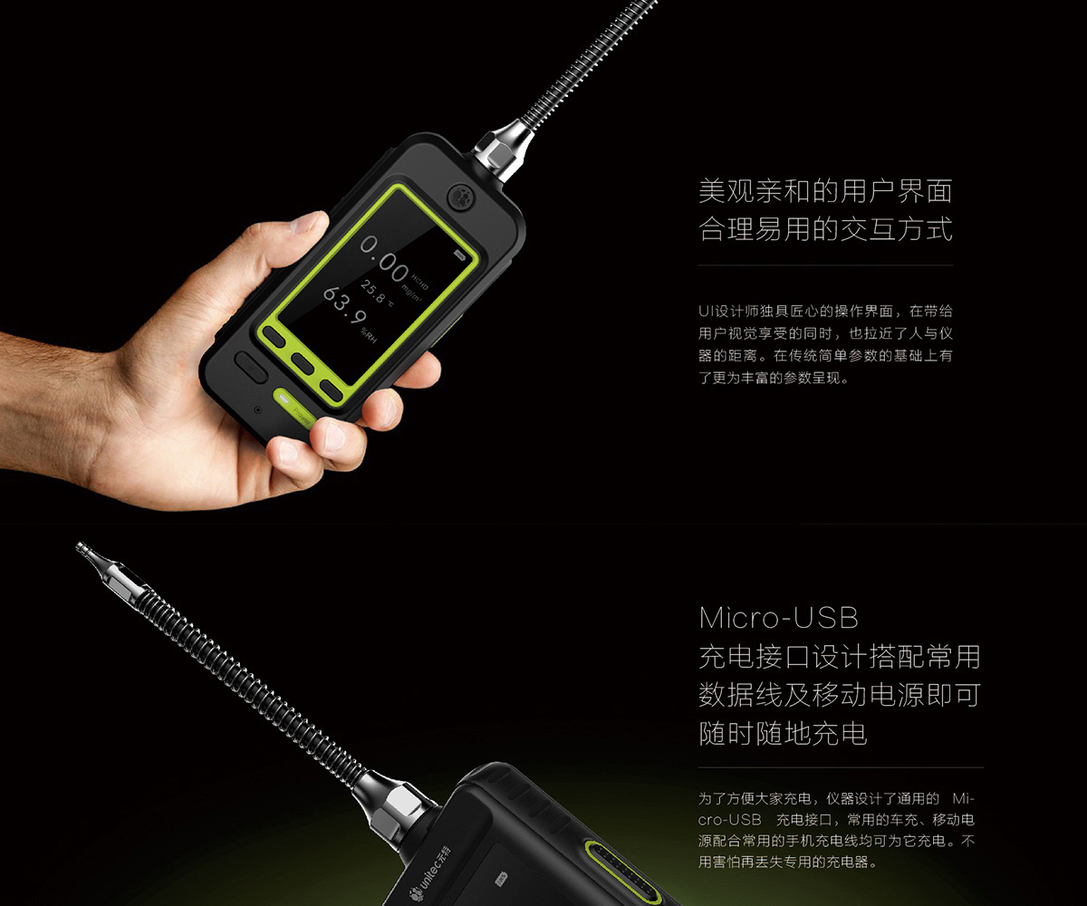 產品亮點PRODUCT HIGHLIGHTS?3 5寸大屏顯示,外形美觀,自主專利結構設計采用3 5寸高清彩屏,120度寬廣可視角。自帶可拆卸吸氣探管≥13