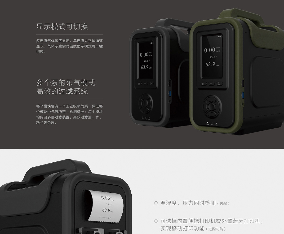 | 模塊化結構: | 機體內部分為三個檢測模塊,每個模塊最多可選配檢測六種氣體,一共可選配檢測十八種氣體,模塊之間的獨立性最大程度上解決了氣體之間相互干擾的難題 | |
