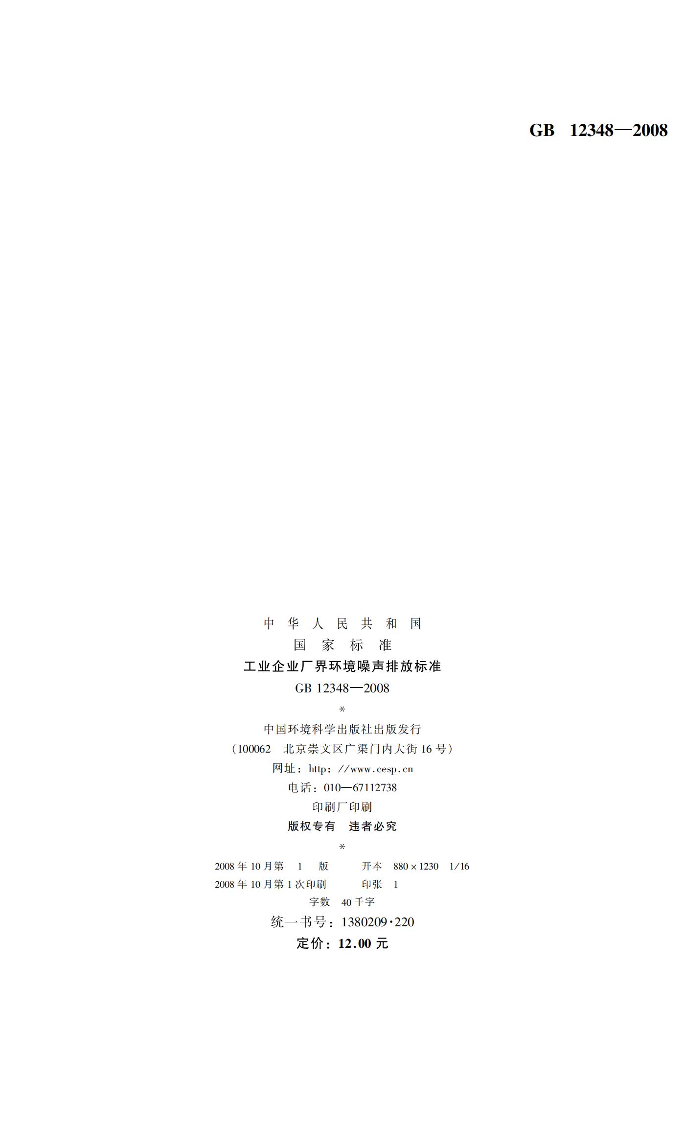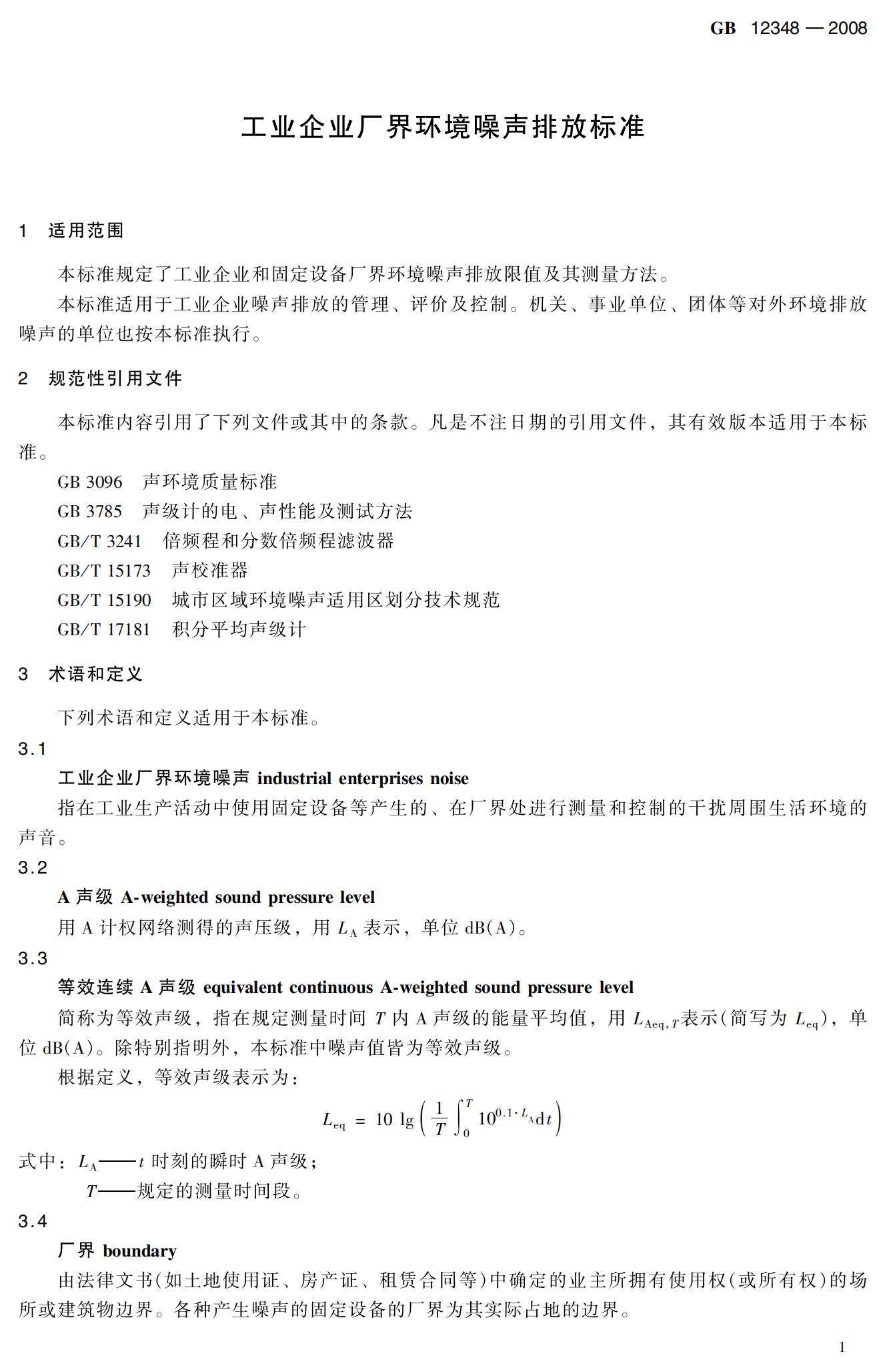 GB 12348 《工業(yè)企業(yè)廠界環(huán)境噪聲排放標(biāo)準(zhǔn)》