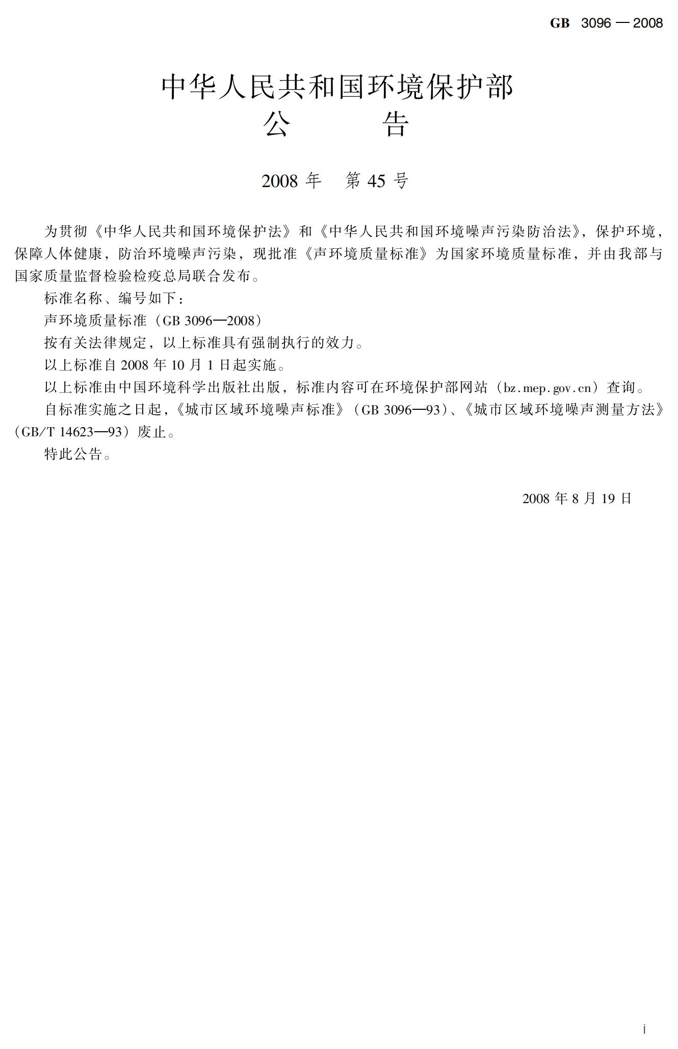 GB3096-2008《聲環(huán)境質(zhì)量標(biāo)準(zhǔn)》