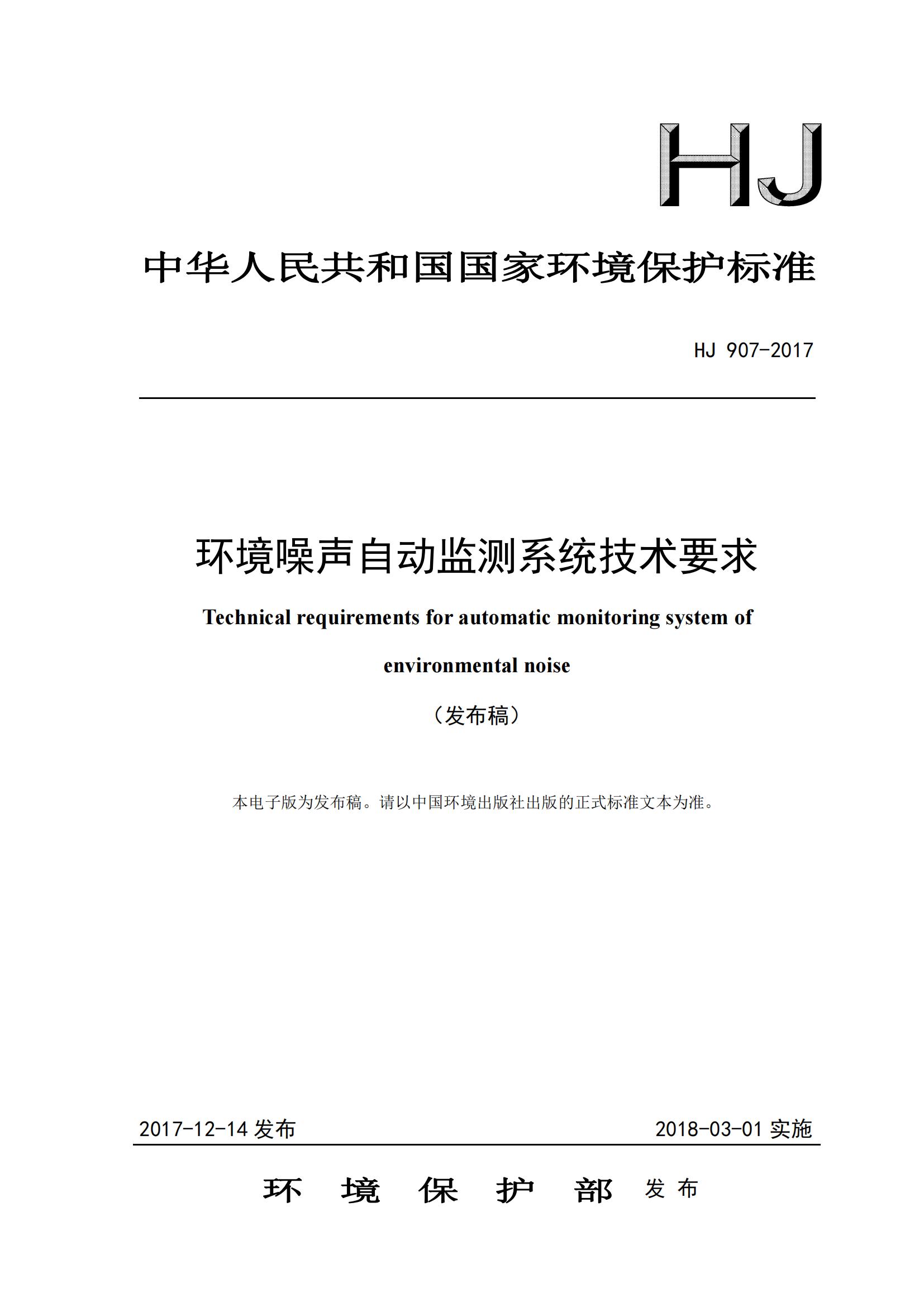 HJ907-2017環(huán)境噪聲自動(dòng)檢測(cè)系統(tǒng)技術(shù)要求