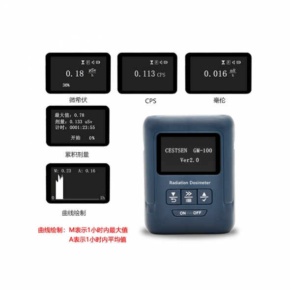 GM-100系列個人劑量儀能夠實時快速的檢測環境中或產品的硬β,γ和X射線,并快速尋找放射源。儀器可設定的報警閾值和劑量模式更適用于醫療防護,核電廠、X光機、輻射泄露等各種輻射防護領域。