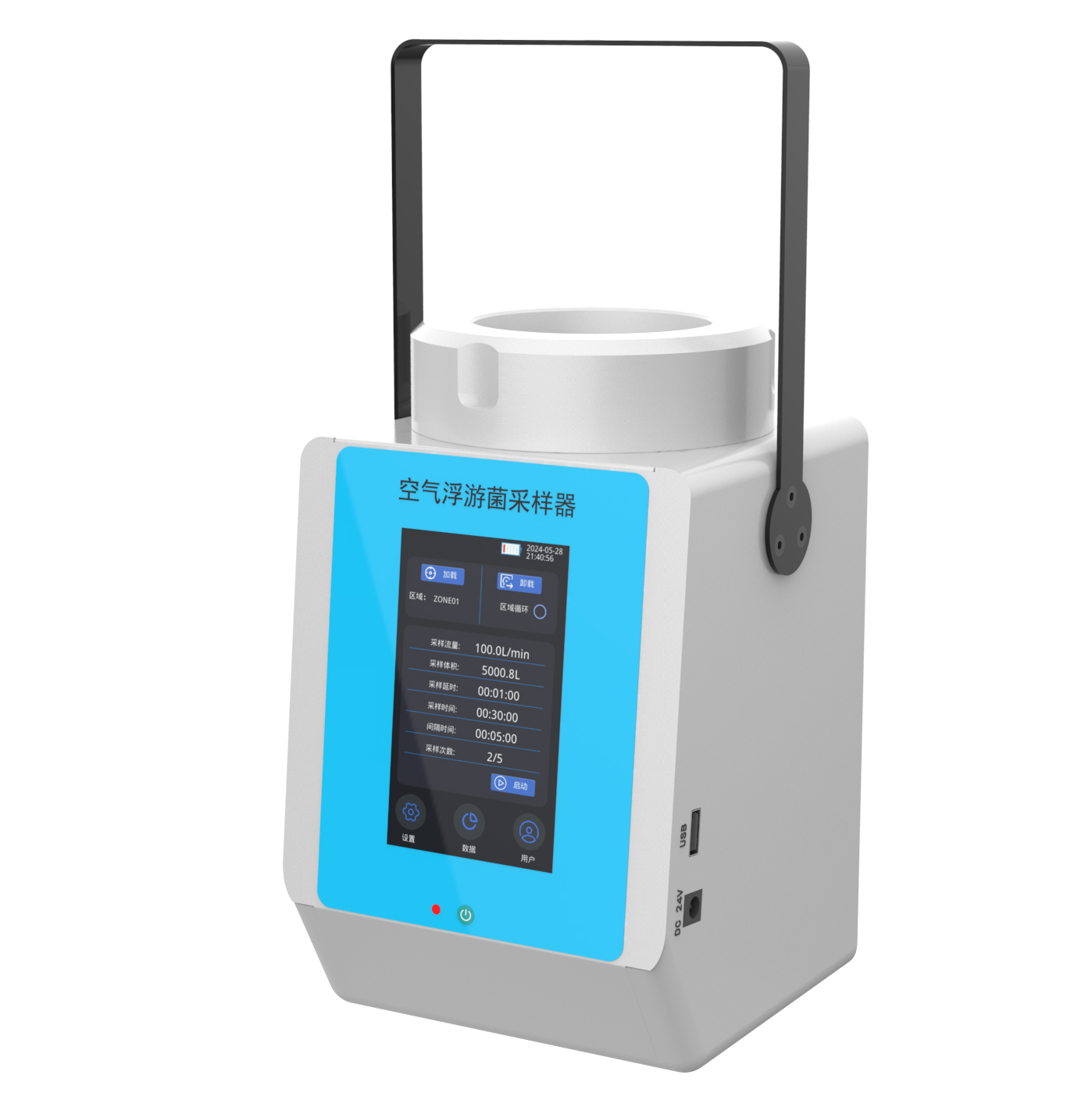 產品概述產品是一種多孔吸入式浮游菌采樣器。本儀器結構獨特新穎,分上下兩部分,上部分采集口和采樣座及氣泵,下部為控制器及電池。浮游菌