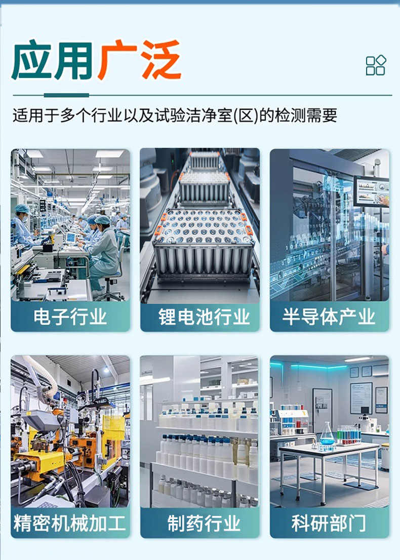 應用 : 潔凈度在Class10-10000級無塵室 潔凈工作臺、潔凈棚、潔凈流水線等對潔凈度有嚴格要求的凈化設備及工藝設備。