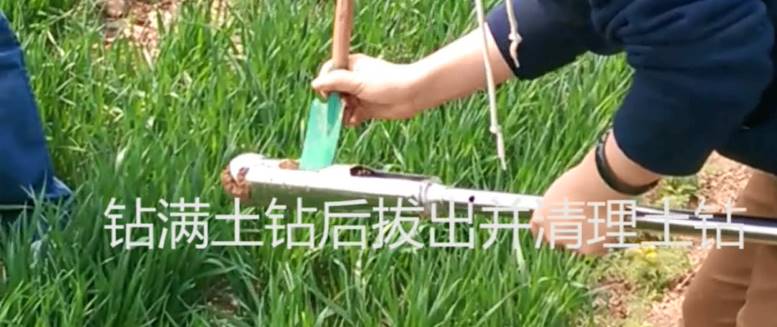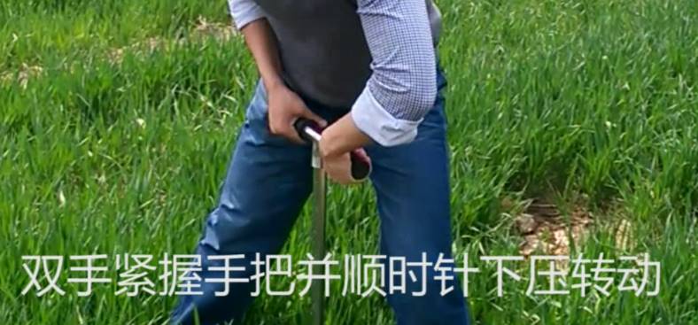 1. 用取土鉆打孔,雙手緊握手把并順時針下壓轉動;