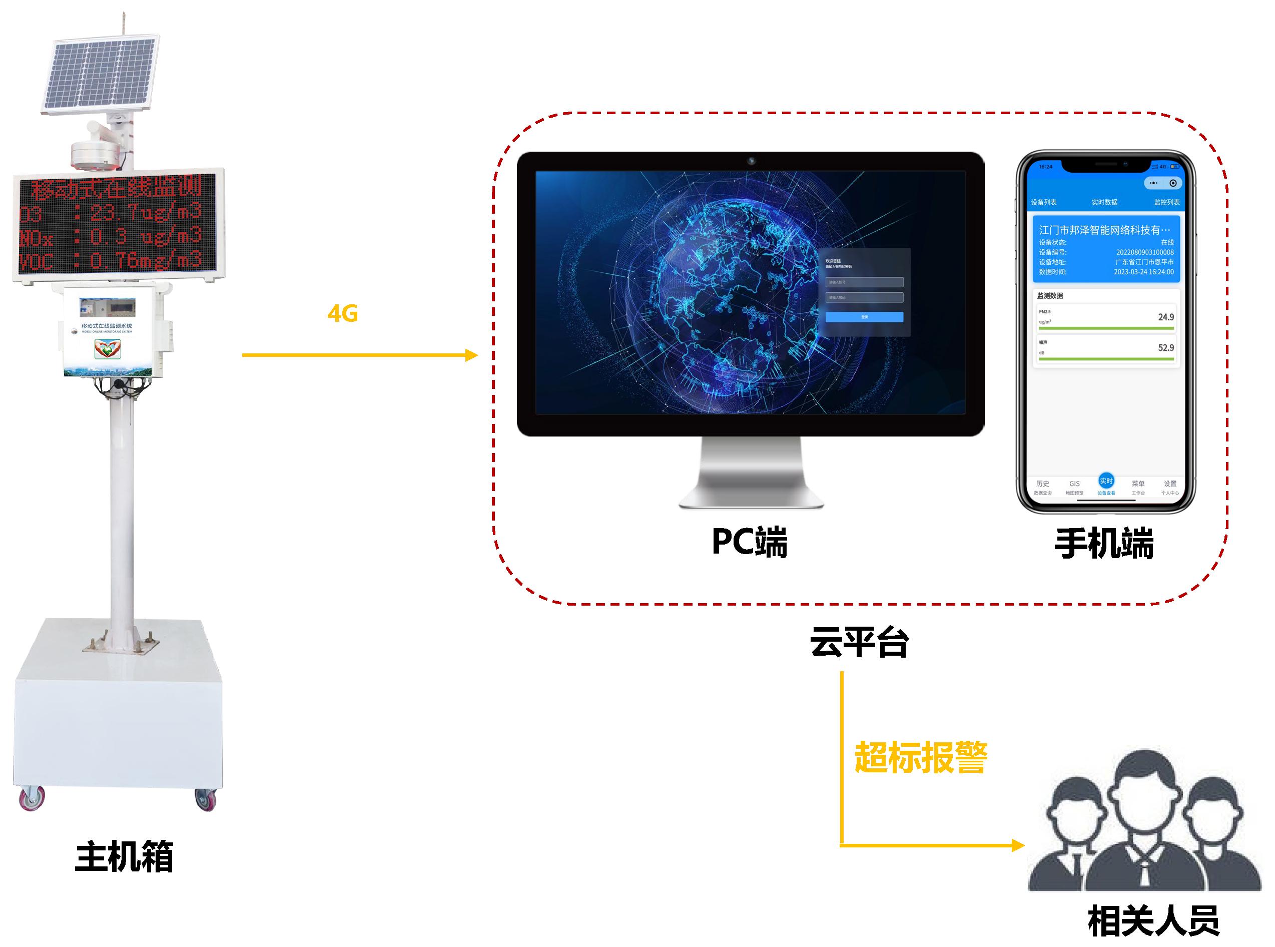 移動式環境在線監控系統,系統集成了物聯網、大數據和云計算技術,通過環境空氣質量參數檢測和視頻監控等設備,實現了實時、遠程、自動監控顆粒物噪聲;數據通過采用4G/5G或有線網絡傳輸,可以在智能移動平臺、桌面PC機等多終端訪問;監控平臺還具有多種統計和高濃度報警功能;同時,系統以光伏能源為動力,實現了自由移動監控、隨時隨地部署,突破環境枷鎖,能夠迅速完成安裝。