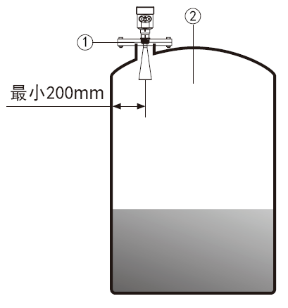 注:距離罐壁最小距離應(yīng)為200mm。注:①基準(zhǔn)面 ②容器中央或?qū)ΨQ軸