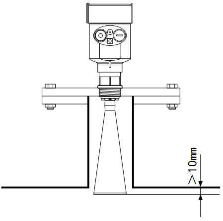 l 接管高度要求: 必須保證天線伸入到罐里至少10mm的距離。